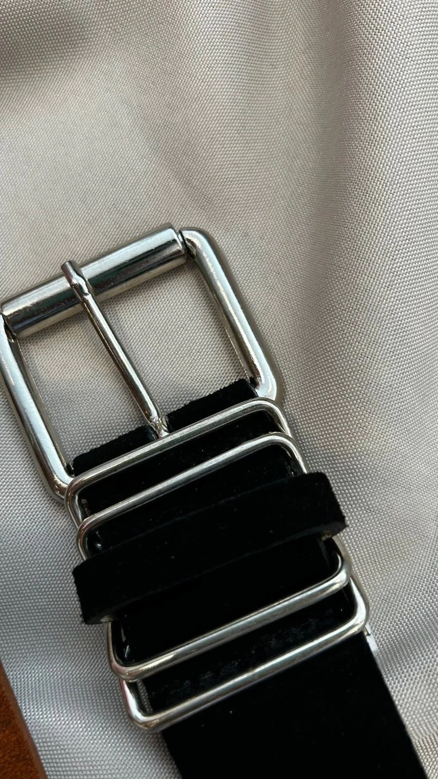 Este cinto é perfeito para complementar qualquer look, seja casual ou formal. Feito em camurça de alta qualidade, ele proporciona um toque sofisticado, enquanto a fivela prateada adiciona um detalhe moderno e charmoso.